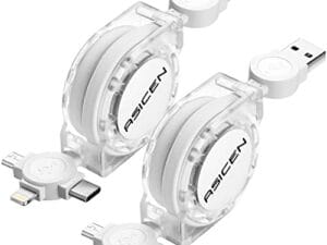 Cargador retractable 3 en 1 con puertos de carga para Iphone/Tipo-C/ Micro USB Color: Blanco (2 unidades)