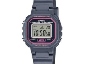 Reloj digital para examen. Resistente al agua. Color gris y rosa. Marca Casio