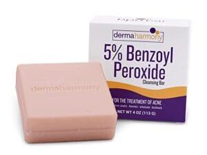 Jabón en barra para cara y cuerpo contra el acné con peróxido de benzoilo (benzoyl peroxide) al 5% (4 oz) Marca dermaharmony