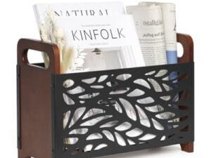 Revistero (magazine holder) de madera y metal para piso. Color negro