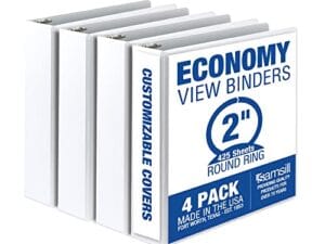 Carpetas binders 2” pulgadas (color blanco) con cubierta transparente para insertar portada Pqte: 4