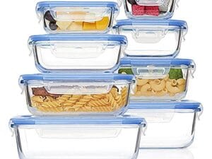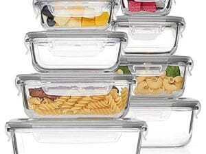 Recipientes de Cristal para Almacenamiento de Alimentos. Con tapas herméticas. 8 tamaños de 5 a 35 onzas con bloqueo a prueba de fugas para microondas