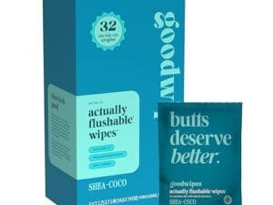 Toallitas desechables femeninas para el baño empacadas individualmente, con vitamina E y aloe. Seguras para el inodoro. Fragancia Shea-coco (32 unidades)