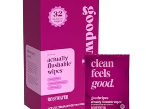 Toallitas desechables femeninas para el baño empacadas individualmente, con vitamina E y aloe. Seguras para el inodoro. Fragancia Agua de rosas (32 unidades)