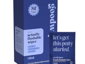Toallitas desechables femeninas para el baño empacadas individualmente, con vitamina E y aloe. Seguras para el inodoro. Fragancia Cedro (32 unidades)