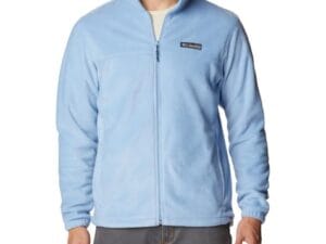 Jacket (para hombre) con zipper cierre completo. Tamaño medium. Color azul pastel. Marca Columbia