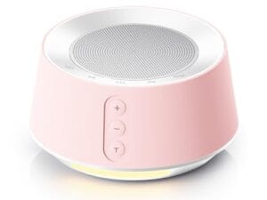 Máquina de ruido blanco (white noise) con 20 sonidos relajantes para dormir (sonido de lluvia, olas del mar, pájaros, entre otros) y con luz nocturna. Color rosa