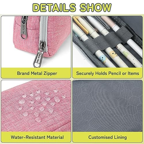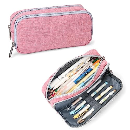 Alta calidad: el estuche de lápices rosa está hecho de nailon ligero y duradero de alta calidad con tirador de cremallera de marca personalizado que es suave y duradero. Todas las costuras están sólidamente cosidas para ofrecer líneas limpias, resistentes a los desgarros, a los arañazos y fáciles de limpiar.