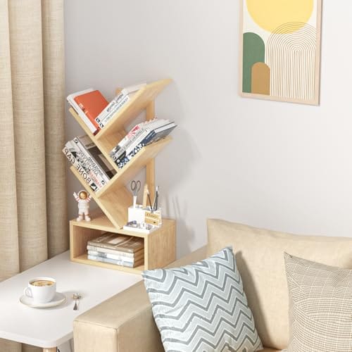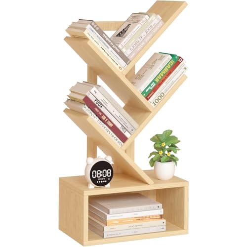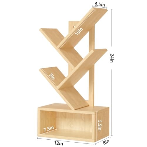 Estantería de árbol pequeño: la inspiración para esta estantería de árbol pequeño de 5 niveles proviene de árboles en la naturaleza. El diseño en forma de árbol proporciona un amplio espacio de almacenamiento categorizado para tus libros y suministros de oficina, ayudando a mantener tu escritorio libre de desorden. Esta encantadora estantería es un compañero perfecto para ti y tu familia mientras trabajas y estudias.