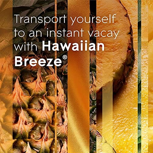 Transpórtate con nuestro ambientador Glade Hawaiian Breeze® PlugIns para el hogar. Elaborado por maestros perfumistas con notas de piña madura, hibisco y néctar de melocotón. Di «Aloha» a la relajación con nuestro difusor de aromas y cambia el estado de ánimo con 2 veces más capacidad de ajuste (en comparación con el calentador Glade anterior). Expresa tu estado de ánimo con difusor de aceite eléctrico en fragancia Hawaiian Breeze®. Simplemente retira la tapa del recambio e insértala en el calentador Glade. Conecta el calentador en una toma de corriente y ajusta el nivel de fragancia para crear el estado de ánimo que desees. Llévate a unas vacaciones instantáneas con el ambientador PlugIn de Glade y fragancia impregnada con aceites esenciales.