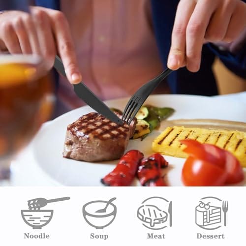Utensilios Plásticos Reusables Pástico—cuchara/tenedor/cuchillo, viajes, picnic, campamento, color negro
