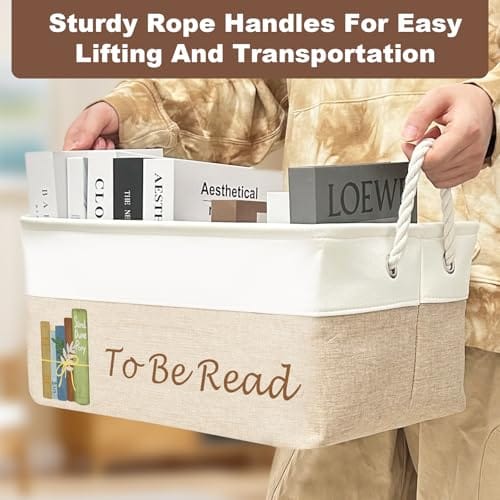 Portátil y plegable: nuestra caja de almacenamiento de libros TBR tiene asas de cuerda fuertes, por lo que es fácil de transportar a diferentes áreas. También se puede plegar cuando no lo necesitas y no ocupa tu espacio